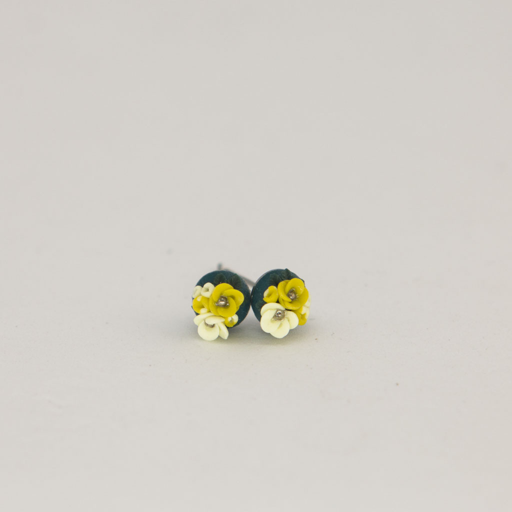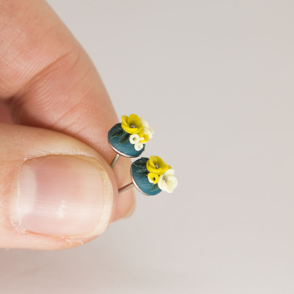 Bei diesen schönen Mini Ohrsteckern bekomme ich direkt Lust auf Sommer. Denn die herrlich frischen Gelbtöne heben sich so schön vom petrolfarbenen Hintergrund ab. Das erinnert mich an Zitrusblüten vor blauem Himmel.